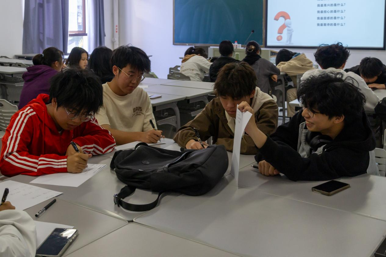 到了“老员工活的五个‘最’”环节,每位同学需要在白纸上填写自己老员工活中的五个“最”:最满意的、最高兴的、最担心的、最困惑的以及最期待的。填写完毕后,同学们在小组内分享个人的感悟与见解。此环节构建了一个促进成员间深度沟通的桥梁,使他们在相互的分享与倾听中增进了解,形成相互支持与鼓励的良好氛围,同时也为老师提供了一个洞悉新生真实状态的窗口,有助于精准捕捉新生的共性问题与需求。