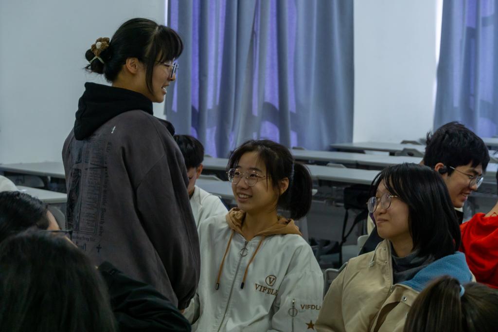 随后是“对对碰”环节,每位成员需要将自己刚才认识的朋友向组内其他朋友介绍,每人有2-3分钟的时间进行分享。通过他者介绍的方式,强化了同学们之间的深度交流与互动,促使他们通过相互记忆与复述信息来加深彼此间的认知。在这样轻松愉悦的氛围中,同学们之间的熟悉程度显著提升,班级凝聚力得到了增强。