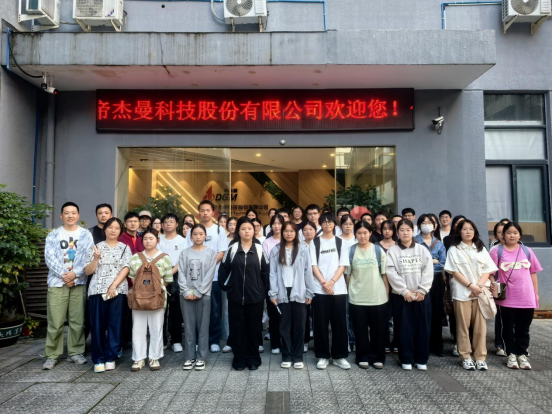 随后,师生一行来到了浙江帝杰曼科技有限公司。浙江帝杰曼科技有限公司副总经理陈健向员工们表示了热烈的欢迎,并引导他们参观了企业展示区,了解了帝杰曼公司的发展历程、关于我们及主营产品。员工们走进了展示大厅,通过展示板和实物展示,对帝杰曼公司的产品种类、应用场景及技术创新有了更加直观的认识。紧接着,他们来到了研发中心,参观了研发部和测试部,详细了解了研发部的工作环境以及体验了新产品的测试流程。