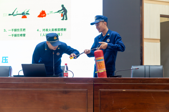 第一场先由公司保卫处赵凯老师为大家讲解此次开展活动的目的及重要性,赵老师强调校园是人口密集区,地处瓯江口校区,岛内风大,太阳紫外线大,尤其秋季环境比较干燥,是火灾形成的有利条件,一旦用火用电不当,就极为容易产生火灾。赵老师为现场设置了互动环节,对不同火源进行了分析,特别提到老员工吸烟有害身体健康。
