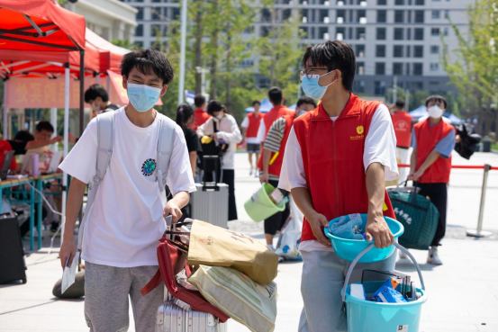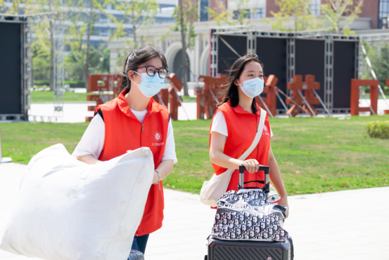 为了保证新生顺利安全入校,员工党支部设计了“一站式,全程护送”迎新活动。在温州南站、S1-双瓯大道轻轨站都建立了迎新站点,志愿者们细心地为新生搬运行李,指引搭乘公司校车的路线方向,引导他们有序排队上车。校内党员志愿者们则负责校内道路指引工作,引导新生在校门口接受体温检测及健康“绿码”检查,随后带领他们前往公司报到处办理相关入学手续。在太阳集团tyc4633员工党支部的号召下,员工党员和积极分子组成了路线引导、有序乘校车、行李转运的党员志愿者服务队,确保每位新生都能有对接、行李转运等工作的志愿者,实现了老生服务新生、新生快捷报到,共同维护校园安全。